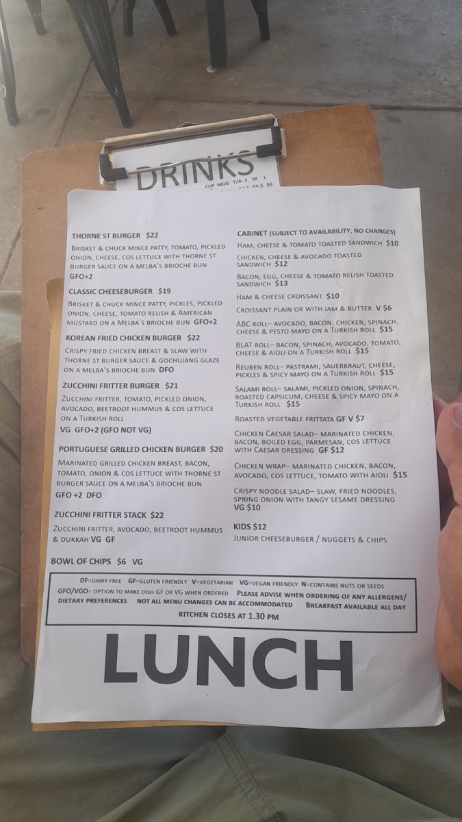 Thorne Street Cafe boasts a menu that expertly blends comfort and quality. Start your day with their indulgent Bacon, Egg, Cheese & Tomato Relish Toasted Sandwich or opt for a refreshing Chicken Caesar Salad. For burger lovers, the Thorne St Burger and the Korean Fried Chicken Burger deliver a satisfying punch of flavor. Don't miss the reliable favorites like their Ham & Cheese Croissant and the warming Apple and Cinnamon Oats.